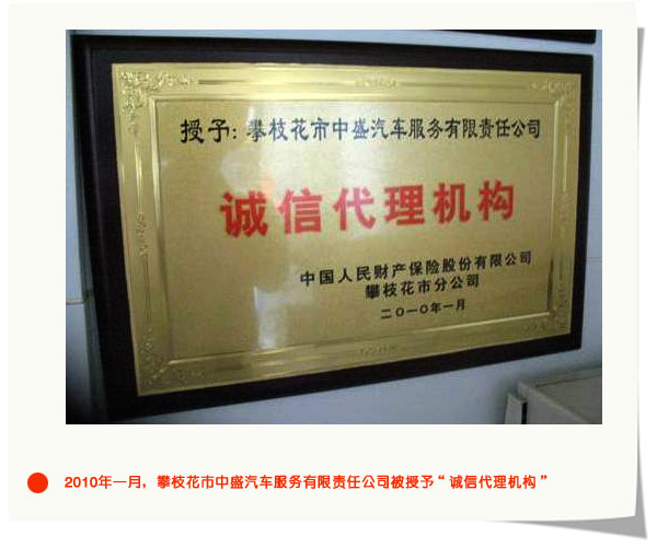 2010年人保財(cái)險(xiǎn)誠信代理機(jī)構(gòu)